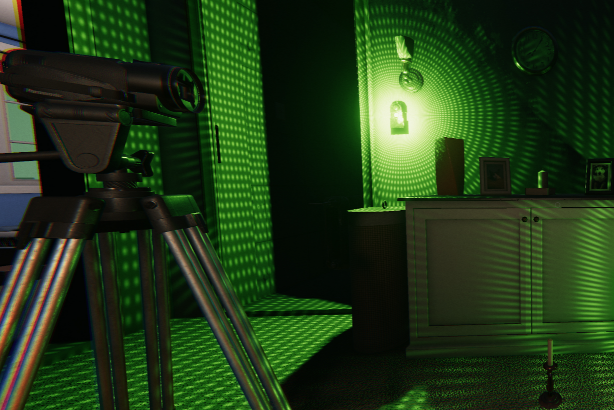 안녕하세요. 유령의 증거를 찾기 위한 파스모포비아 기본 장비 중에는 도트 프로젝터(D.O.T.S Projector)가 있습니다. 해당 장비가 설치된 구역으로 유령이 지나가게 되면, 일정 확률로 실루엣이 보이게 됩니다. 보통 실루엣은 2초 이내로 나타나기 때문에 플레이어는 두려움을 이기고 꾸준히 관찰하는 것이 중요합니다.