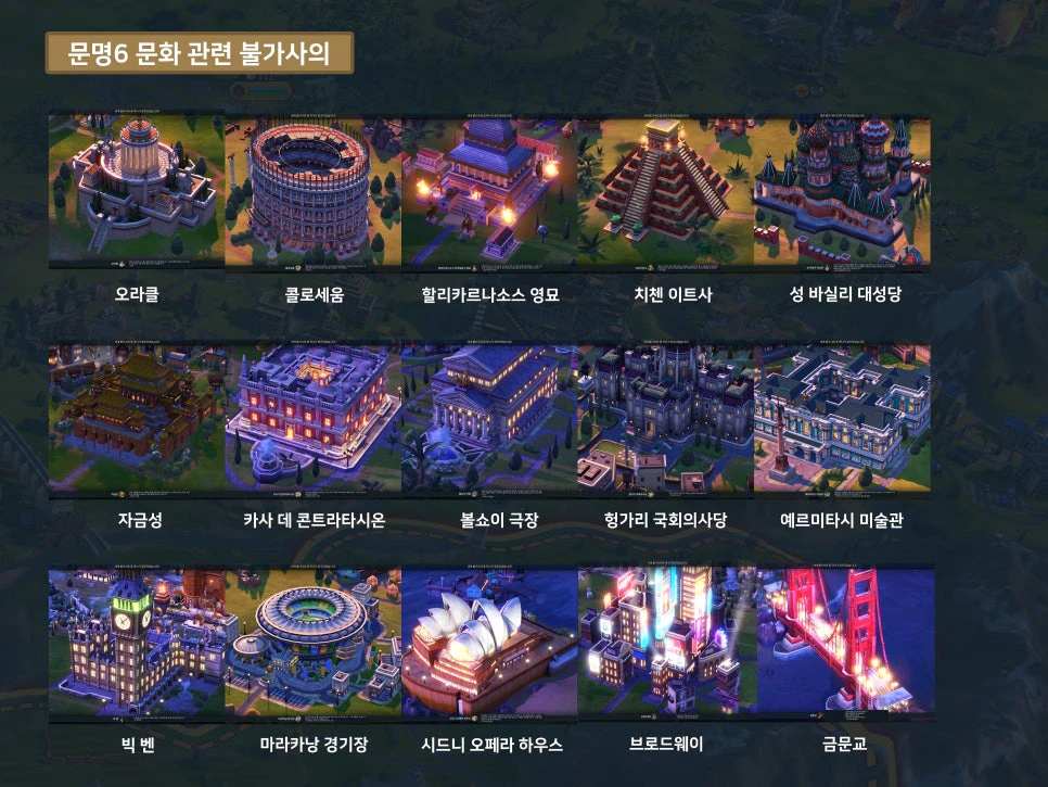 <문명6 문화승리 불가사의>