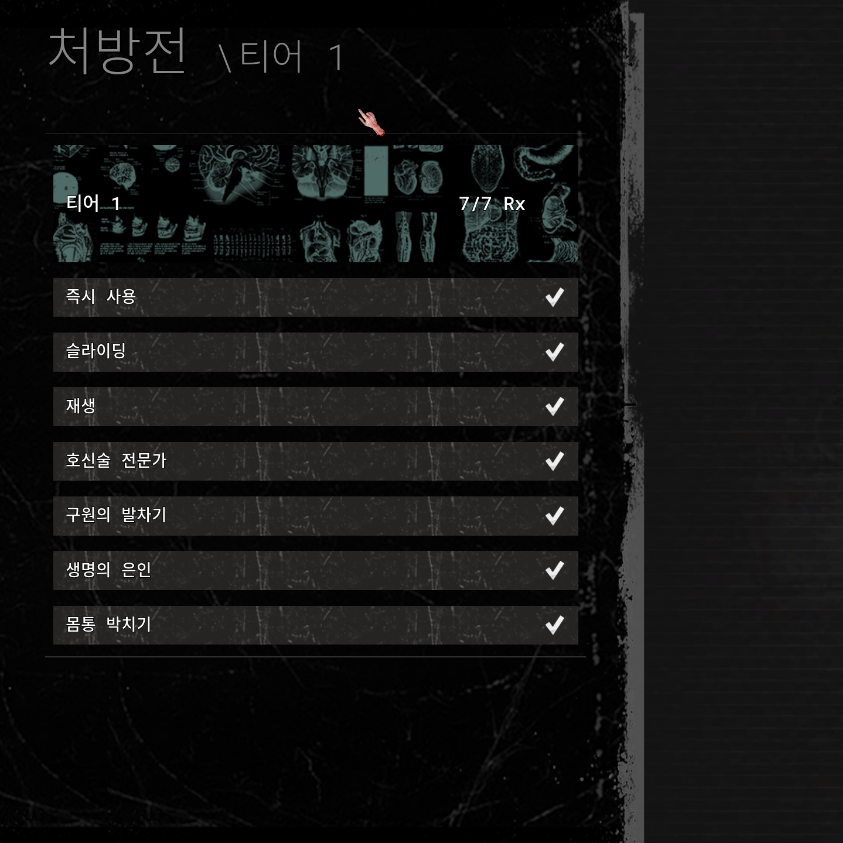 이때 처방전은 티어 1과 티어 2로 나뉘며, 각각 사용되는 티켓의 개수가 다르므로 초반에 기술을 배울 때에 자신의 플레이 방식을 고려하여 신중하게 선택하는 것이 중요합니다.