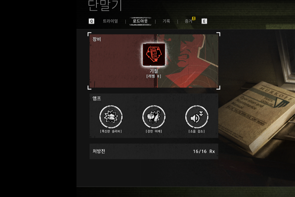 이러한 패시브 능력들은 실제 미션을 진행할 때에도 큰 도움이 되며, 레벨이 높을수록 오히려 게임 플레이가 쉬워집니다. 처방전은 크게 캐릭터의 기본 능력을 높이면서, 적으로부터 발각될 수 있는 확률을 낮춰주고, 도주의 성공률도 높여줍니다.