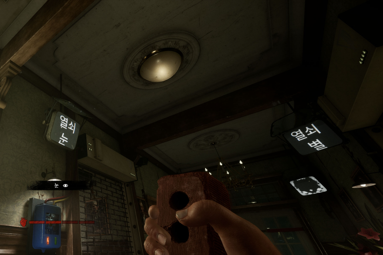 해당 장소에서 위에 있는 두 개의 모니터를 응시하고 있으면, 단서에 대한 내용이 나옵니다. 참고로 사진 속에서는 '눈'과 '별'로 적혀이지만, 단서는 매번 피실험체 해방 프로토콜을 진행할 때마다 달라집니다.