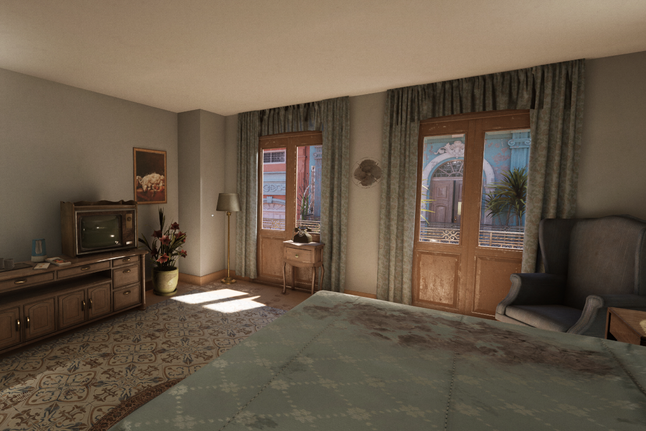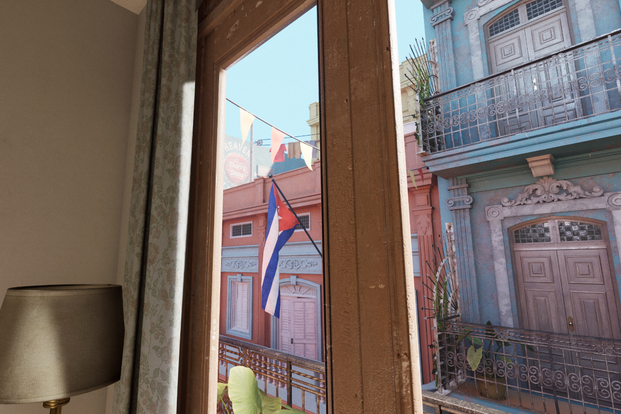 창문 밖은 아웃라스트 트라이얼에서 볼 수 없는 이국적이고 밝은 분위기로 자세히 귀를 기울여보면, 총성이 계속해서 들린다. 밖에는 공산주의 국가인 쿠바 국기가 걸려 있고, 엔딩 배경은 냉전이 발발했던 1950년대로 추정된다.