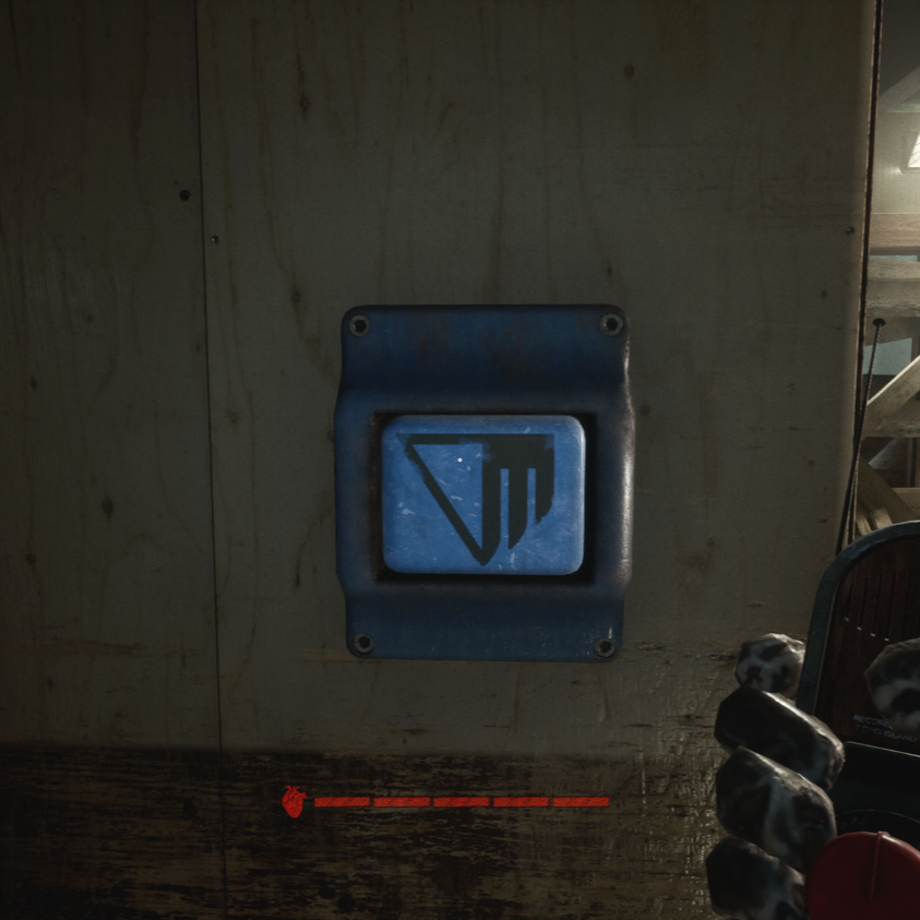 비밀의 방을 여는 방법은 위 사진처럼 머코프 시설 문양의 파란색 스위치 2개를 찾아서, 두 명이 동시에 누르는 것입니다. 스위치를 누를 때의 지속시간은 2초 정도로 짧은 편이며, 비밀의 문에 위치가 바뀔 때마다 스위치의 위치도 변합니다.