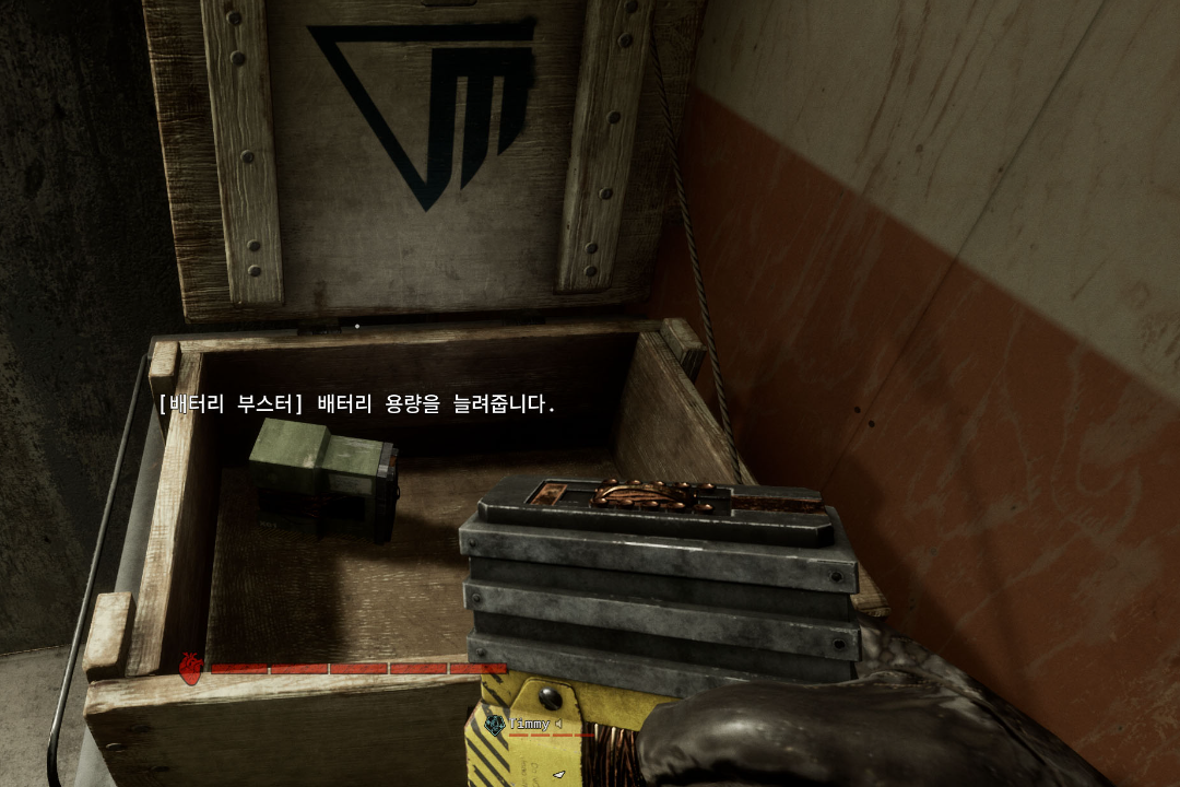 배터리 부스터는 야간투시경 배터리의 용량을 대폭 늘려주며, 플레이어가 어둠 속에서도 장시간 버틸 수 있게 도와줍니다. 참고로 게임 속에서 '대형 배터리'처럼 충전 가능한 소모품들이 다량 등장하기 때문에 일반 챕터에서는 크게 유용하지는 않습니다.