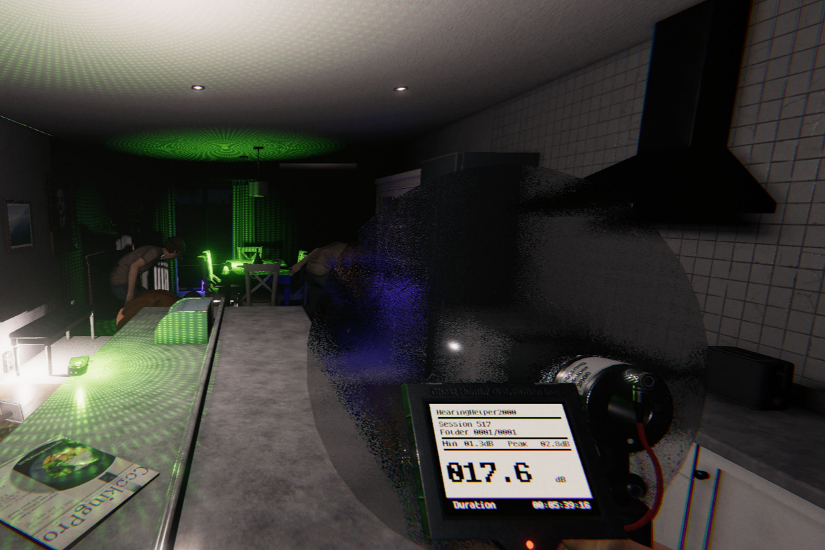 마이크로폰의 디스플레이를 자세히 들여다보면, 모델명이 'HearingHelper2000'이라고 적혀있습니다. 그 외에 Session 518과 Folder 표기는 디자인적인 요소일 뿐이므로 게임 플레이 동안에는 수치가 변하지 않습니다.