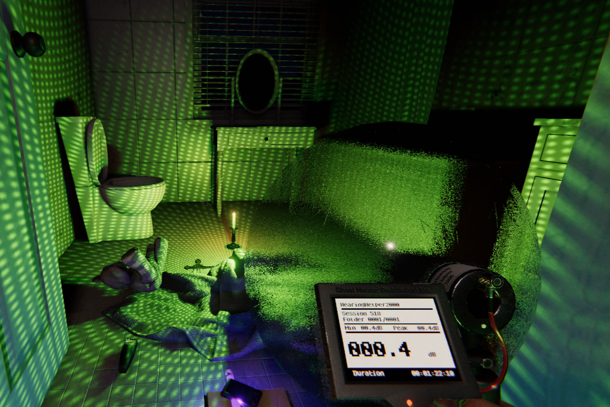 특히 'Sunny Meadows' 맵처럼 복도에서 종종 들리는 비명 소리는 마이크로폰에 함께 관측되기도 합니다. 따라서 데시벨을 통해 유령이 있을만한 장소를 의심하고, 해당 장소의 반경에서 팀원과 함께 조사를 시작하는 것이 노하우입니다.