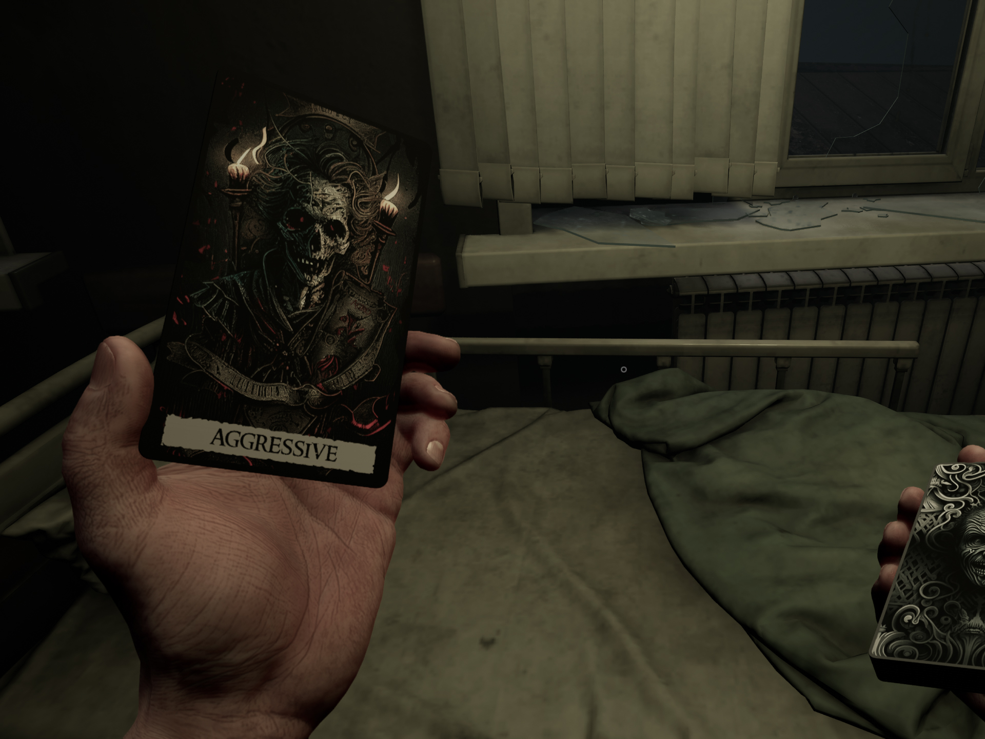 데모놀로지스트에서는 공격성이 낮은 성향의 유령도 존재하나, 이것은 플레이어가 영향을 주지 않을 때의 이야기입니다. 다만, AGGRESSIVE 카드는 공격성이 적었던 유령의 헌팅 주기를 앞당길 수 있고, DEVIL 카드는 부적보다 많은 상호작용을 일으켜서 인근에 있던 플레이어의 정신력을 깎아내립니다.