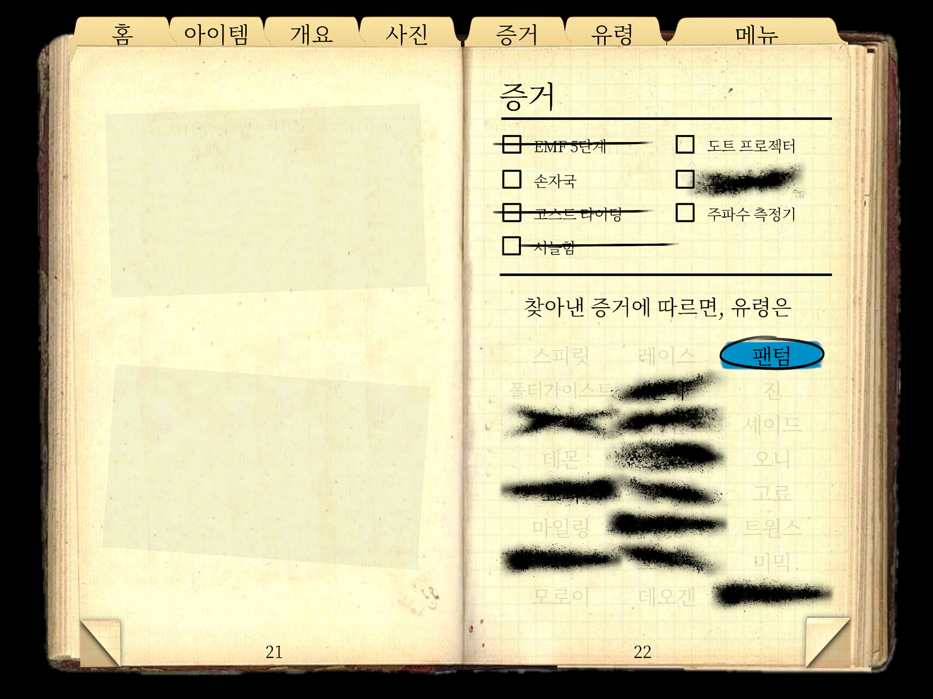 : 유령과 다른 증거 하나 삭제, 일지에 반영/