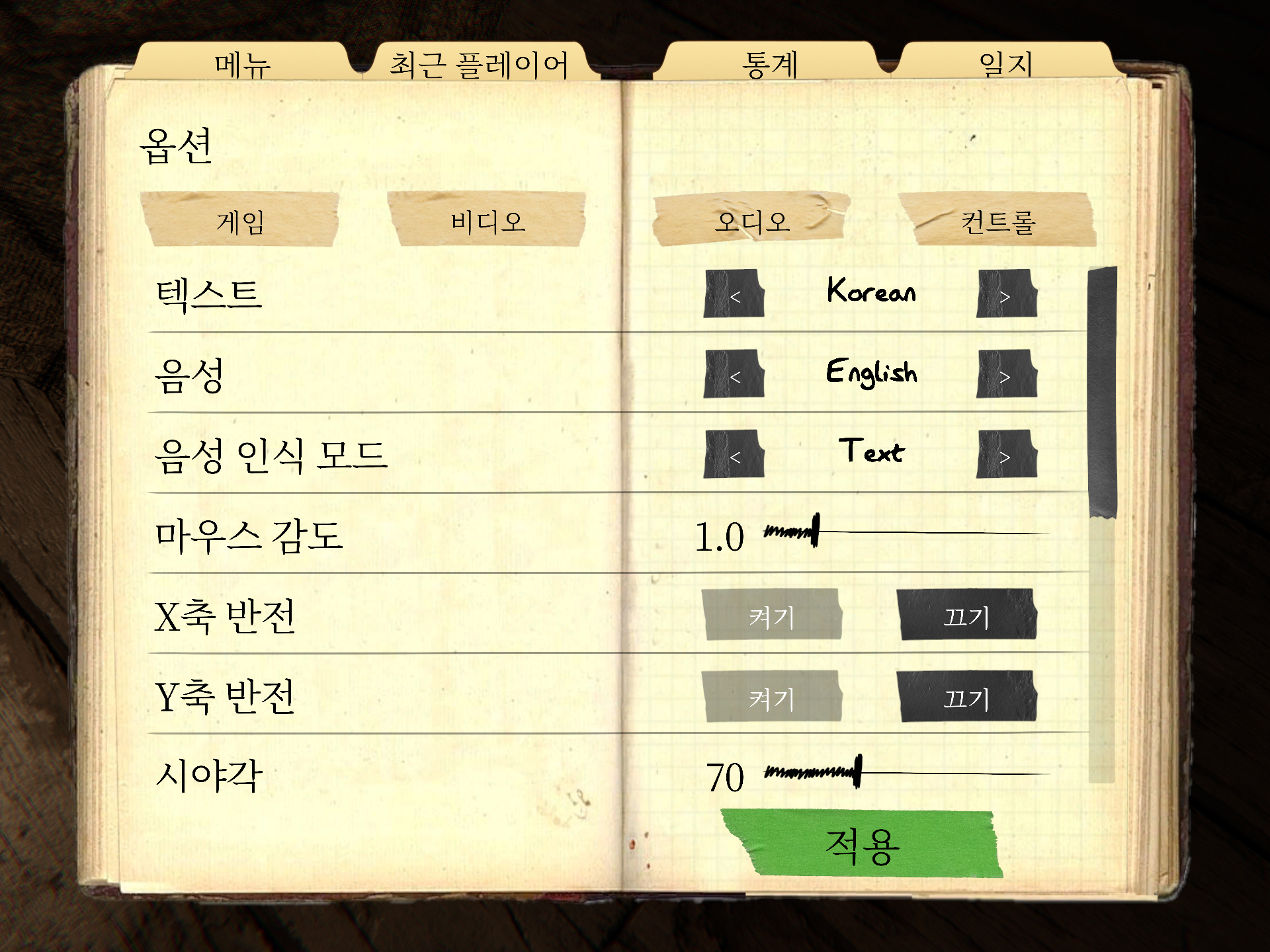 'J' 키를 눌러서 옵션으로 들어가게 되면, <오디오> 항목에 <음성 인식 모드>가 있습니다. 보통 게임을 처음 시작한 분들은 기본 옵션이 'None'으로 설정되어 있는데, 이것을 'Text'로 바꾸면 텍스트 커맨드 모드가 되며, 활성화시켜 주시면 음성을 통해서도 원숭이손을 사용할 수 있습니다.