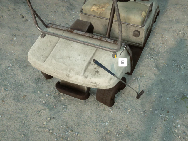 추가적으로 무기인 골프채(퍼터)와 공을 발견할 수 있으며, 멀티 플레이 중인 인원들과 게임 내의 재밌는 콘텐츠를 만들기 유용한 곳입니다. 그렇다면 지금부터 어떻게 카트를 사용할 수 있는지 그 방법에 대해 설명드리겠습니다.