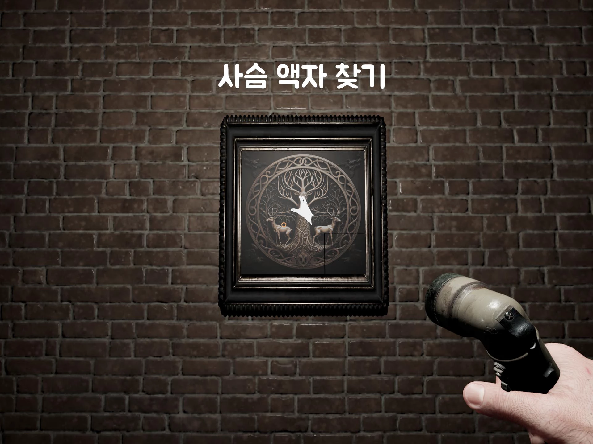 단서를 모두 모아서 모든 플레이어가 유령을 특정 지었다면, 첫 번째로 집 내부 벽의 랜덤 한 위치에 생성되는 사슴 그림 액자를 찾으셔야 됩니다. 사슴 그림은 사진과 같으며, 상호작용을 하게 될 경우에 조각 하나를 얻게 됩니다.