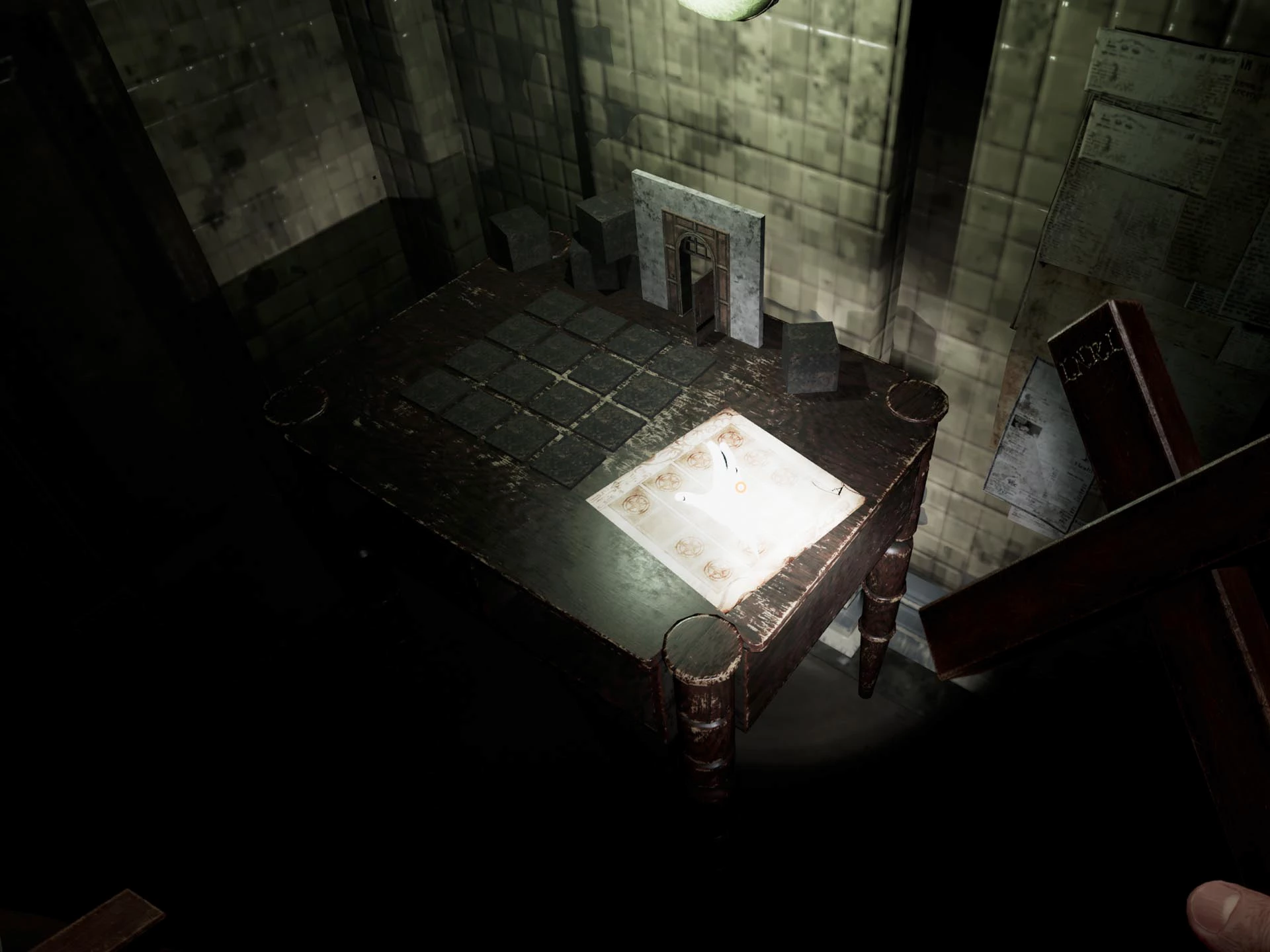 1층 입구를 기준으로 왼쪽 두 번째 방에는 4x4 행렬의 독특한 발판 그림이 테이블 위에 있습니다. 테이블 앞의 문이 바로 유령이 과거에 있었던 방으로 가는 문이며, 앞서 퍼즐을 모두 맞춘 경우에만 열리게 됩니다.