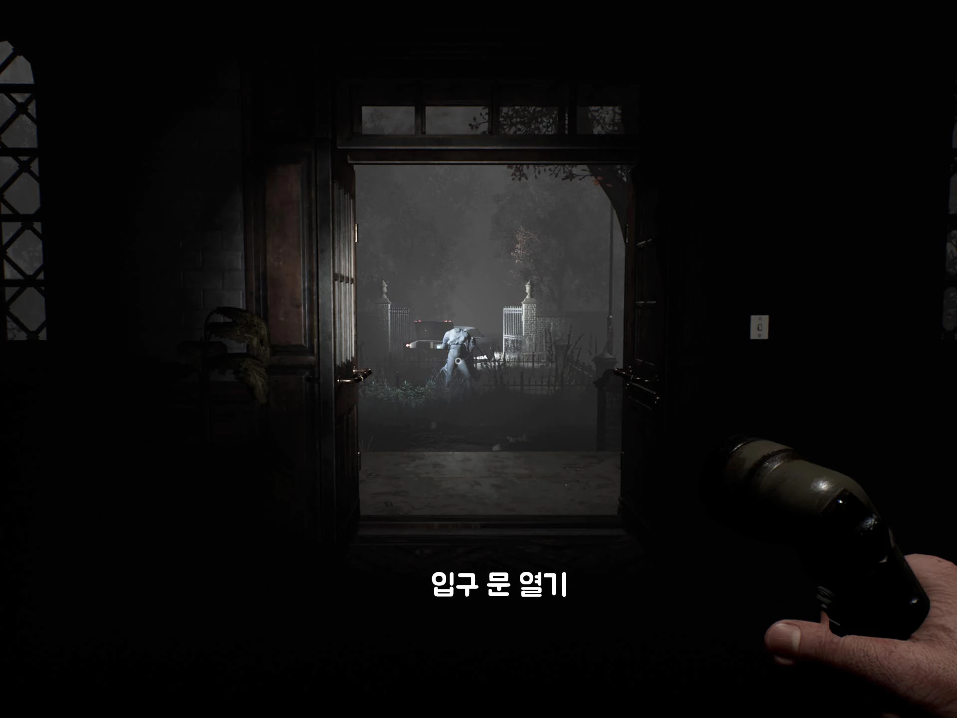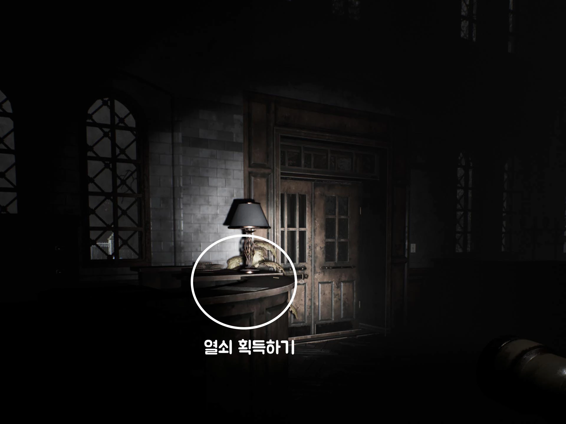 복도를 따라서 집 앞쪽으로 쭉 들어가시면, 문 옆쪽의 테이블 위에 열쇠 하나가 놓여 있습니다. 열쇠를 얻은 후에 입구에서 E 키를 눌러 상호작용을 하게 되면, 문이 열리게 됩니다.