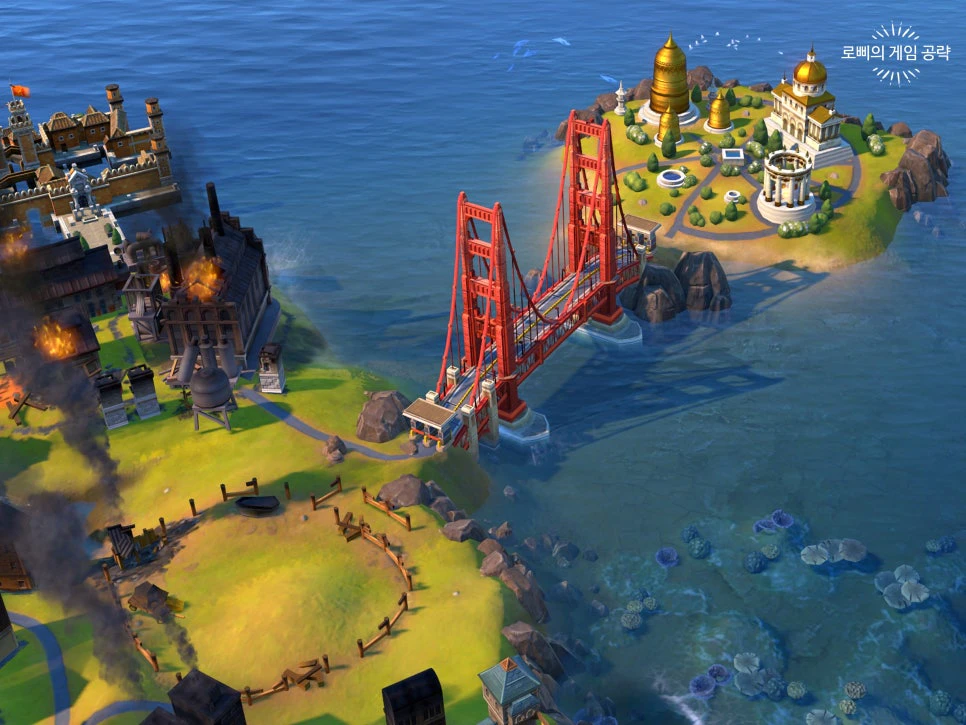 이처럼 문명6 내에서 금문교를 짓는 방법과 조건들은 간단하면서도, 맵의 모양에 따라서 매우 까다롭습니다. 물론 무작위 지형에 따라서 운 좋게 건설 가능할 수도 있지만, 때로는 조건에 부합하는 지형이 완전히 나오지 않을 때도 있기 때문에 게임을 처음 접한 초보에게는 어려웠을 것입니다.