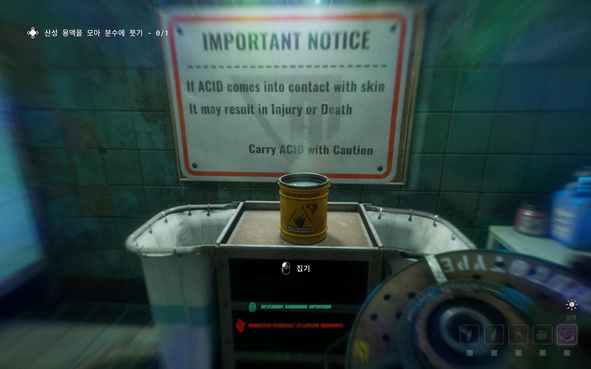 참고로 산성용액을 캐릭터가 들고 있는 상태에서