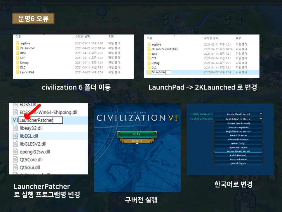 문명6 게임 시작 시에 실행이 안되거나, 검은 화면인 상태 혹은 곧바로 종료되는 경우. 해결 방법은 다음과 같습니다.
